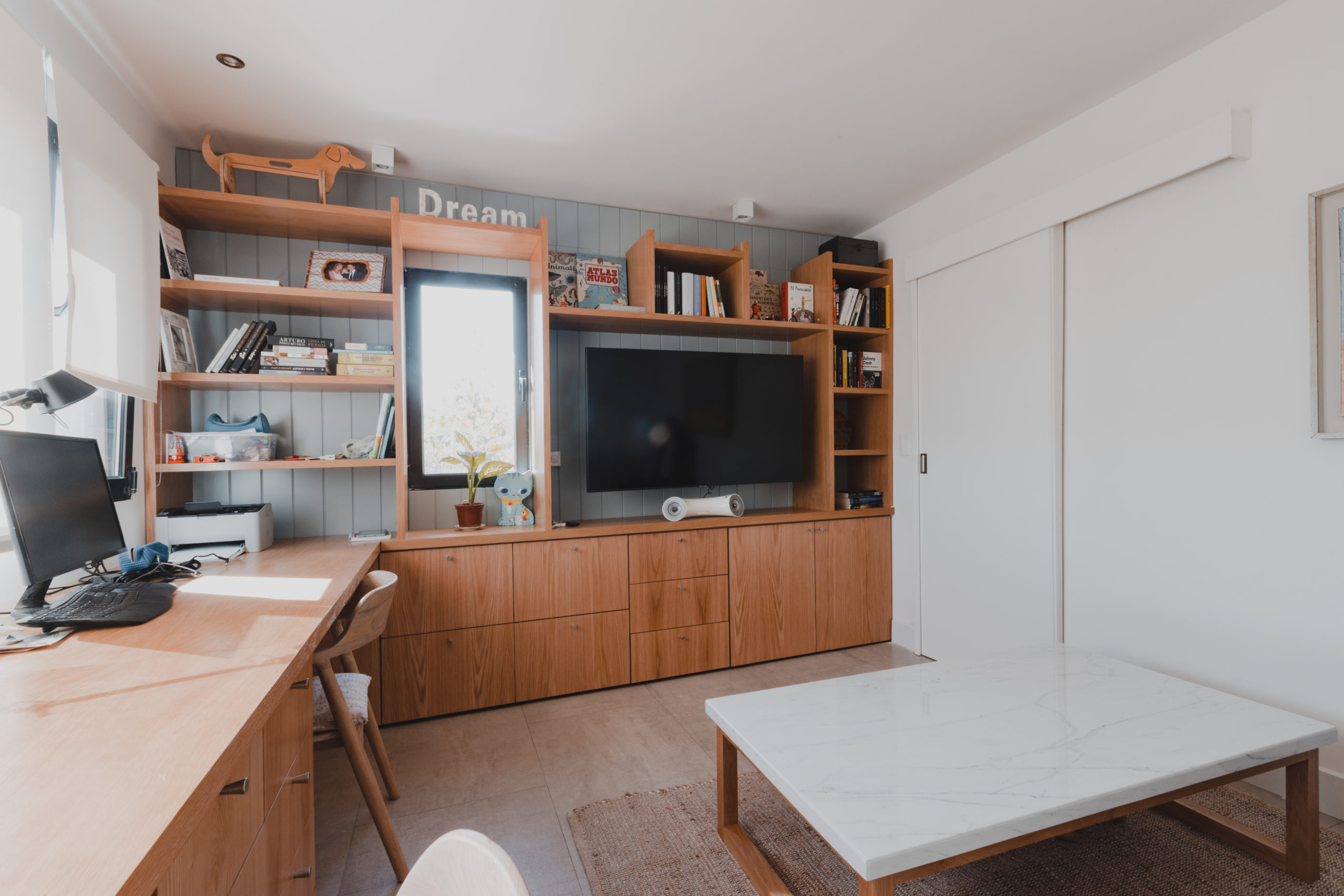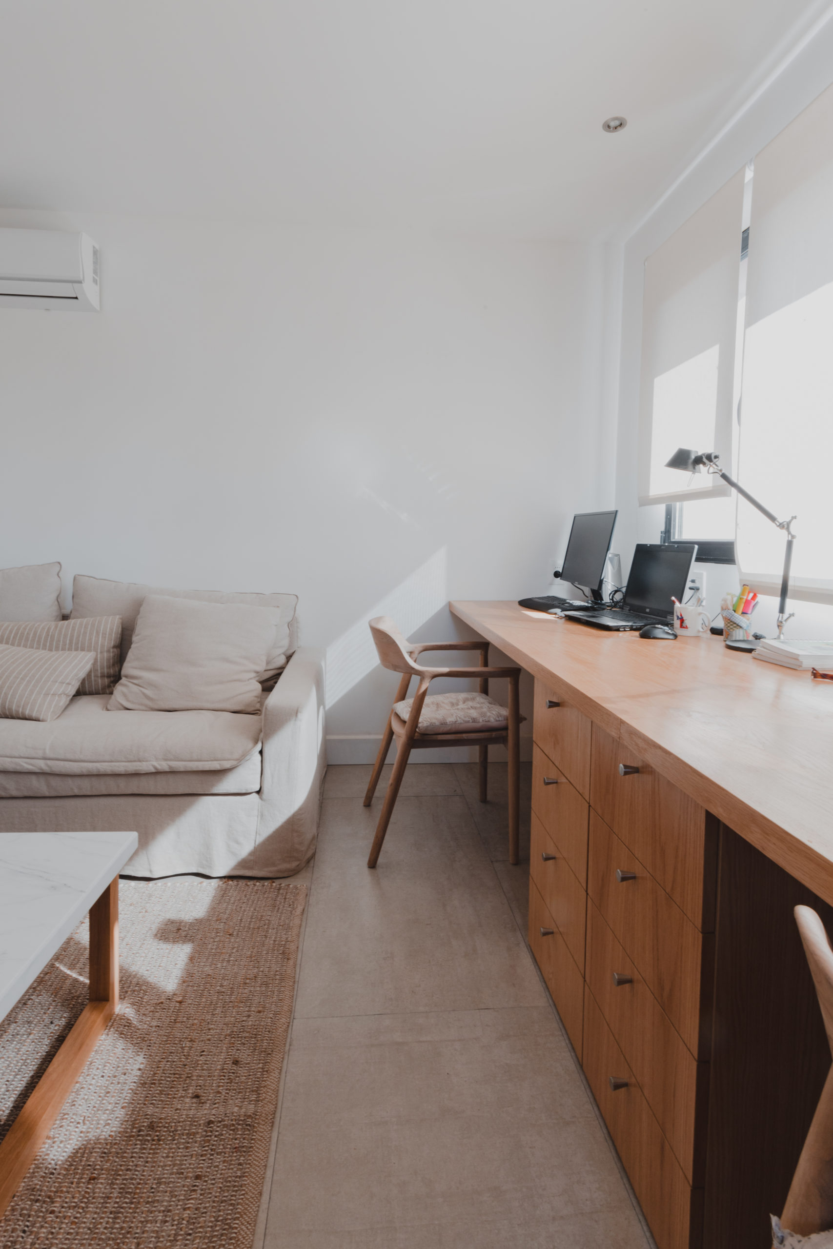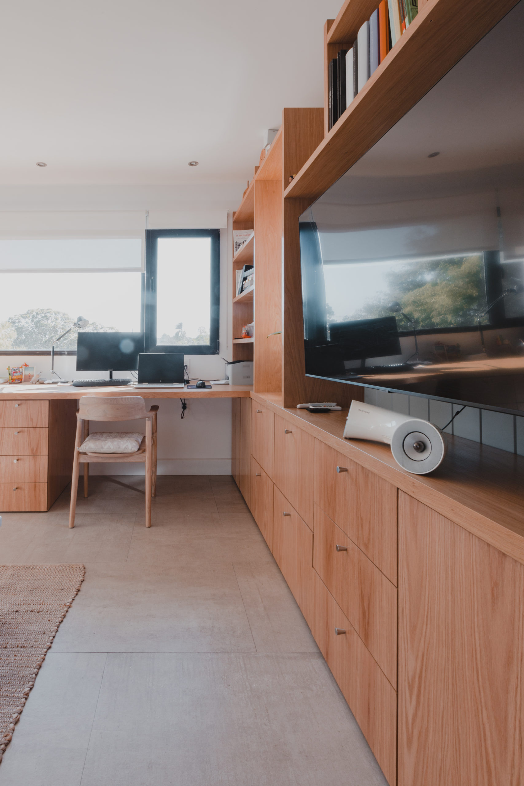 La pandemia está influyendo en las necesidades de las personas en querer renovar sus viviendas, buscando un equilibrio entre el trabajo y la vida personal. Por eso, el cliente quiso incorporar un escritorio en la planta alta de su casa. Un espacio multifacético, necesario para los tiempos de hoy. Además, se renovó el lavadero, ampliando dicho espacio, generando un almacén y un mudroom en la entrada de servicio.