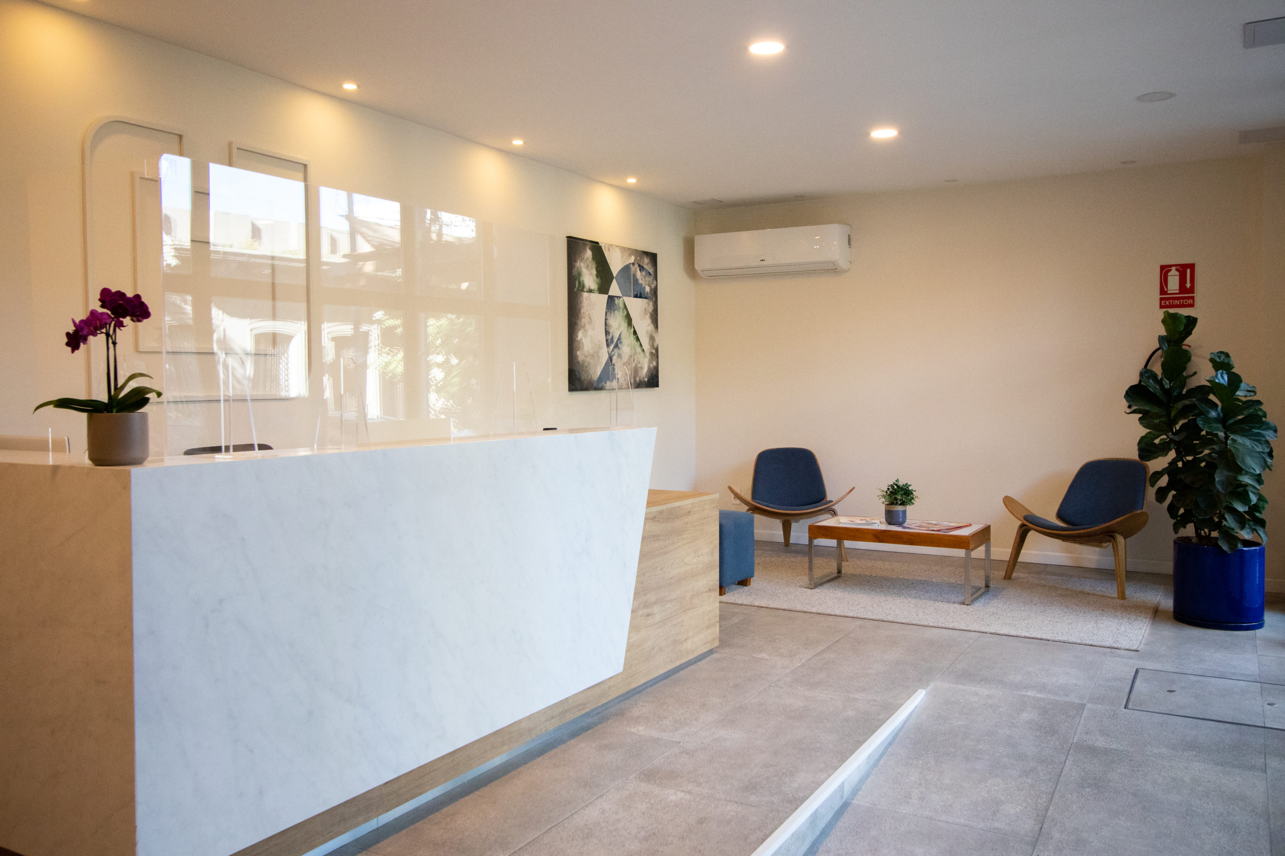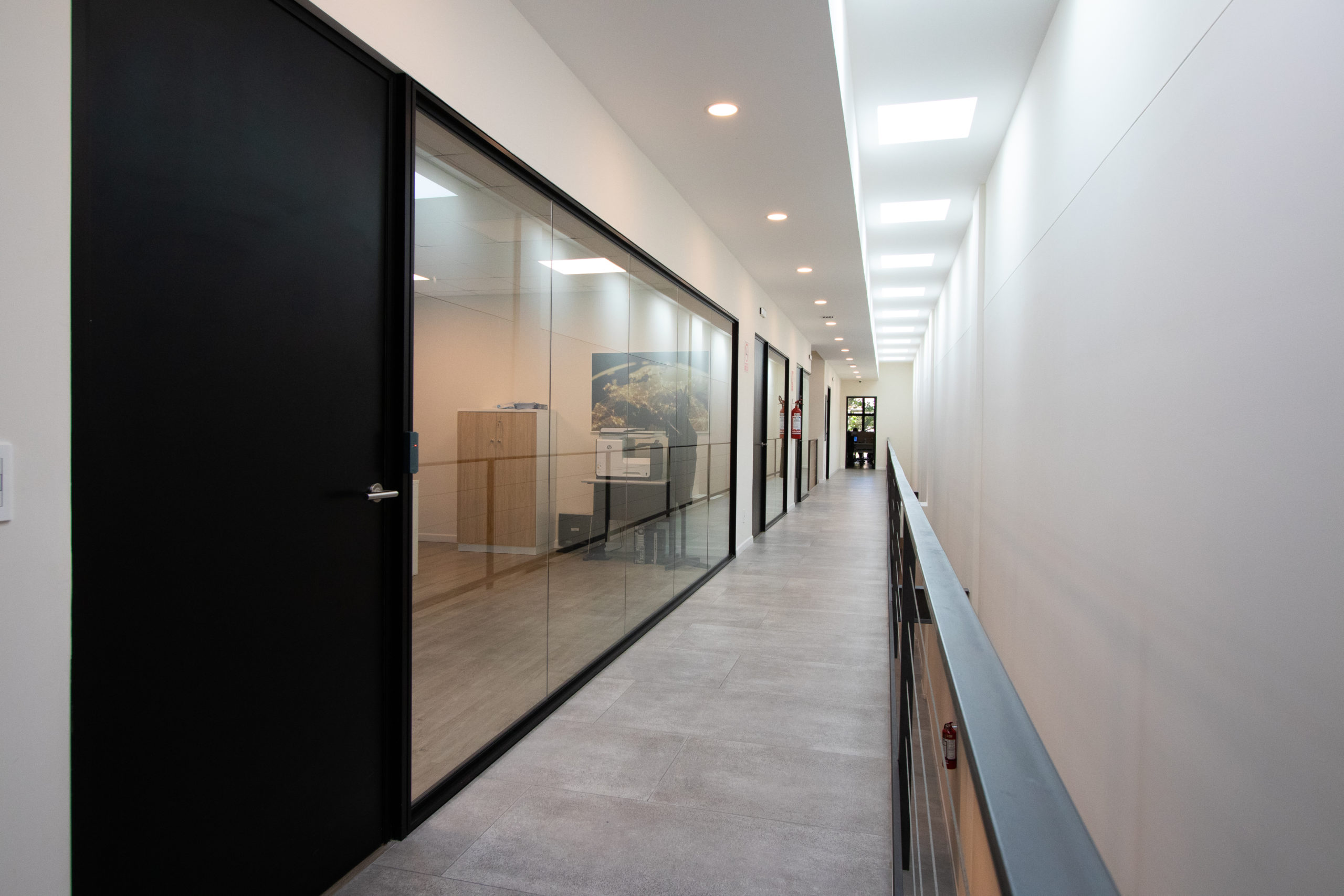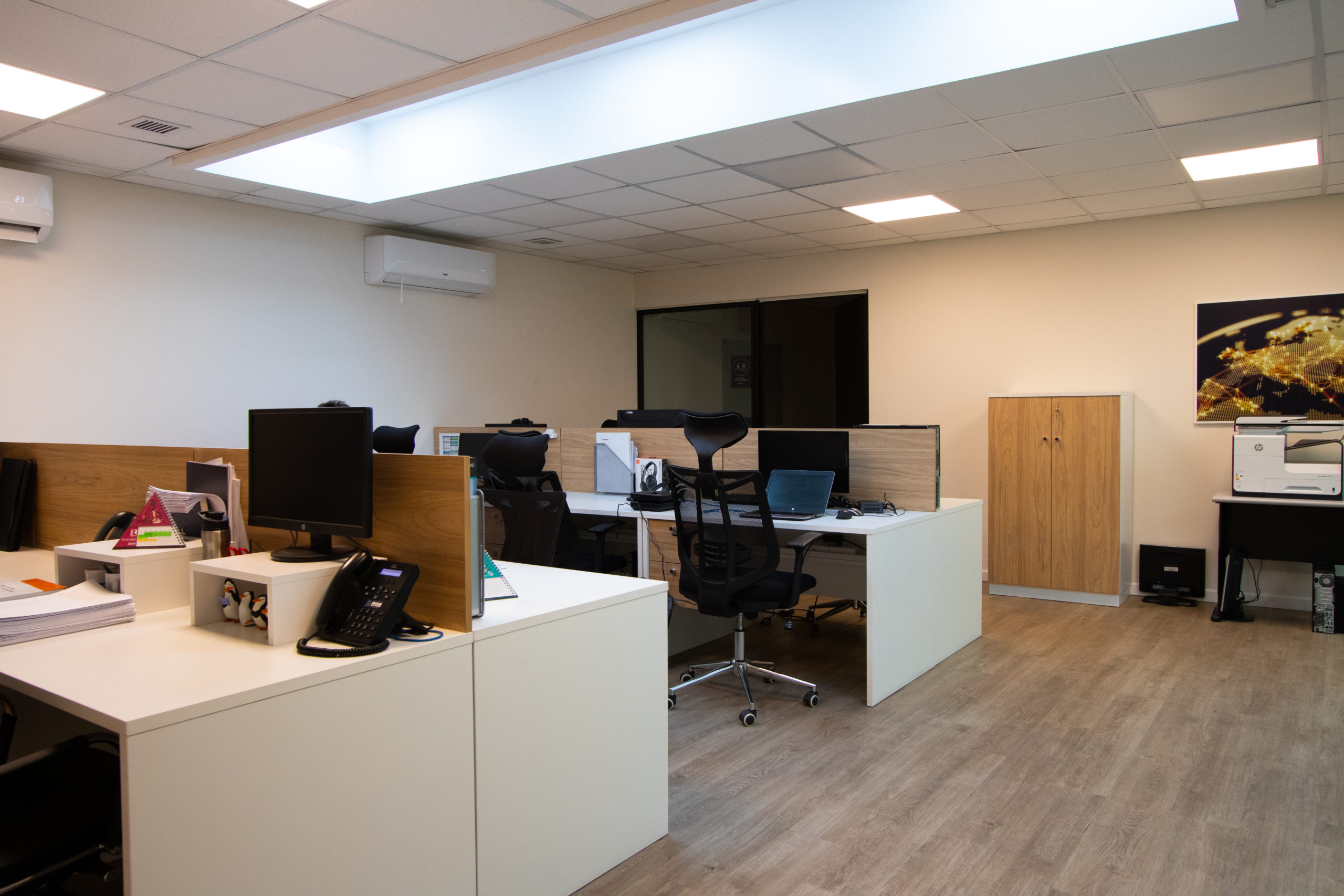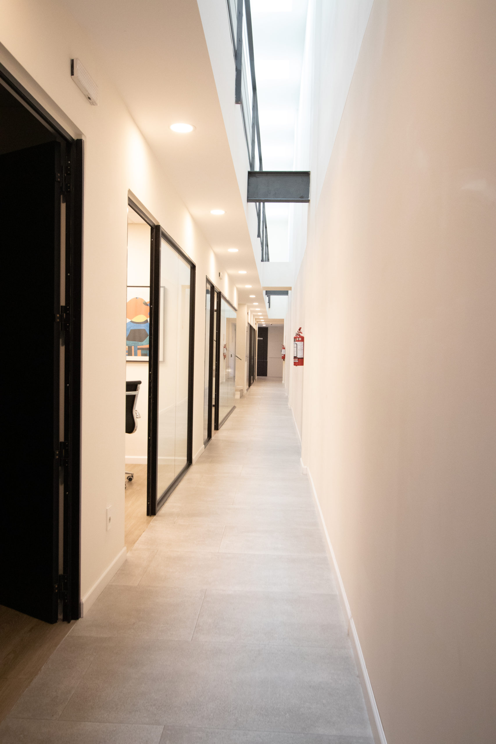 Proyecto de oficinas de 710 m², dispuesto en dos plantas con una única fachada. Se trabajó sobre el objetivo de renovar el ambiente de trabajo, por lo que se demolió el edificio existente, y se proyectaron nuevos espacios respetando las necesidades del cliente. Dentro de un terreno donde el factor de ocupación era del 100%, se buscó la manera de que la luz ingresara al edificio a través de una serie de lucernarnarios, lo cual, gracias a una doble altura a lo largo del corredor, las oficinas se empapan de luz natural.